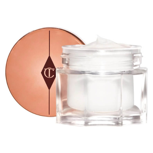 To prep her base, Earle mixes the Charlotte Tilbury Magic Cream ($90 at Charlotte Tilbury) and the Drunk Elephant D-Bronzi™ Anti-Pollution Sunshine Drops ($60 at MECCA - if you can catch them in stock). She combines them on the back of her hand before blending all over her face using her fingers.