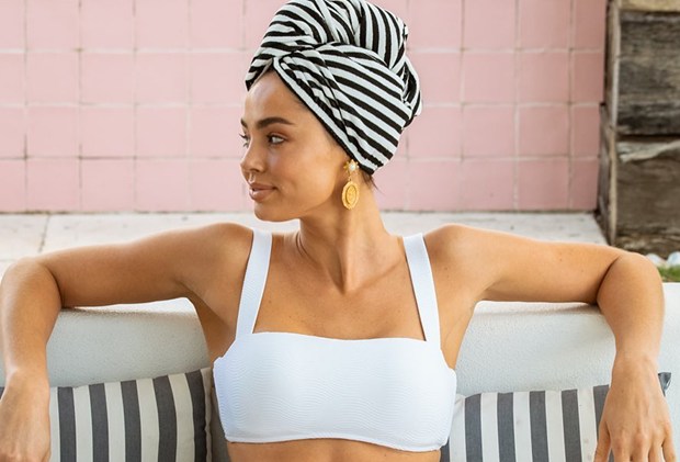 “I suggest using a microfibre towel or turban out of the shower. Hair is super fragile when it’s wet, so using a regular cotton towel can be too harsh for your delicate strands, causing breakage or split ends. [Try] gently squeezing out moisture with your hands and then wrapping it up with microfibre – it’s much more gentle and won’t cause any damage.”