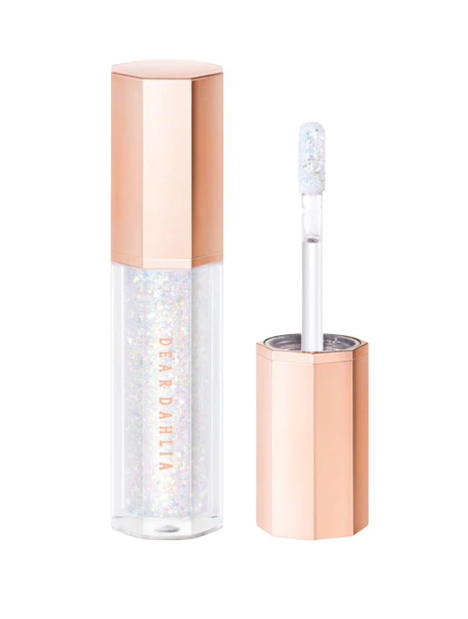 FENTY BEAUTY Gloss Bomb Ice Cold Heart'D Lip Gloss ($37 at Sephora); Nikkia Joy Cosmetics Snowflake Metallic Pigment ($19 at Nikkia Joy Cosmetics); and Lemonhead LA Spacepaste in ‘Mirage’ ($36.09 at Revolve).