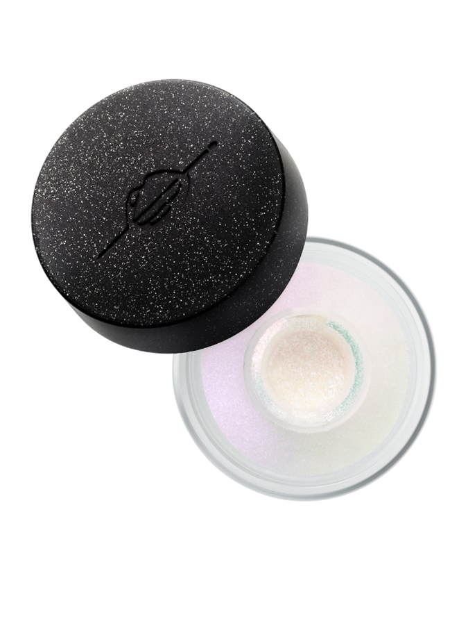 SEPHORA COLLECTION Colorful Magnetic Eyeshadow in ‘11 Big Bang’ ($14 at Sephora); DEAR DAHLIA Paradise Shine Eye Sequins in ‘Crystal Trance’ ($51 at Sephora); and MAKE UP FOR EVER Star Lit Diamond Powder Highlighter in ‘106 Green White’ ($41 at Sephora).
