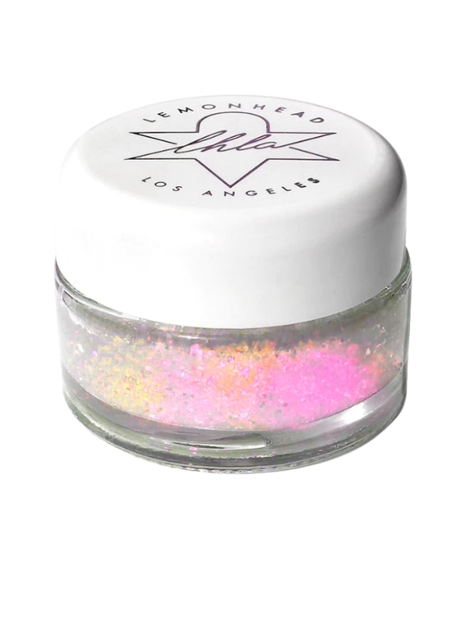 FENTY BEAUTY Gloss Bomb Ice Cold Heart'D Lip Gloss ($37 at Sephora); Nikkia Joy Cosmetics Snowflake Metallic Pigment ($19 at Nikkia Joy Cosmetics); and Lemonhead LA Spacepaste in ‘Mirage’ ($36.09 at Revolve).