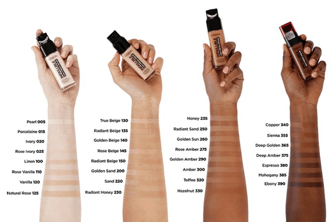 We’ve taken the liberty of hunting them down for you so you can add to cart and breeze on through to checkout: 15 Porcelain, 20 Ivory, 120 Vanilla, 130 True Beige, 140 Golden Beige, 145 Rose Beige, 150 Radiant Beige, 180 Rose Sand, 200 Golden Sand, 220 Sand, 245 Golden Honey, 260 Golden Sun, 290 Golden Amber, 340 Copper, and 355 Sienna.