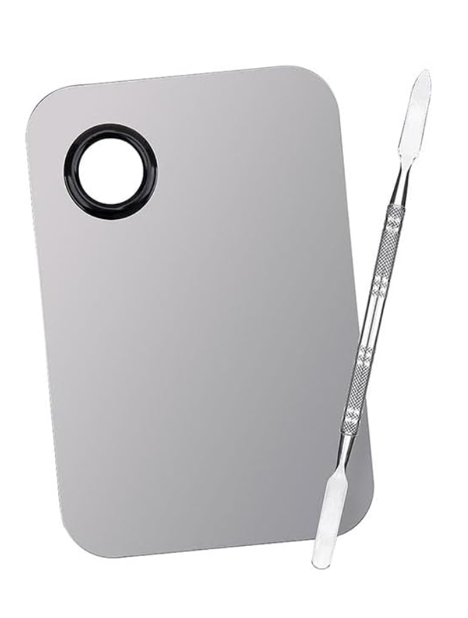 Next, Ganzorigt mixed together OPI's Super Gloss No Wipe Top Coat (also a salon-only product), a velvet magnifying loose powder, and some of OPI's Cliffside Karaoke to create a custom cat eye shade. But you can achieve the same result from combining a bit of Vishine Gel Nail Polish in 'Dark Chocolate' ($9.99 from Amazon Australia) and BLUESKY Silver Cat Eye Gel Nail Polish ($14.69 from Amazon Australia) on a Stainless Steel Cosmetic Makeup Palette ($9.99 from Amazon Australia). Once combined, you can apply the custom colour to the nail using a nail brush (we like to recycle and clean the applicators from old nail polish bottles for this purpose), and set under a UV lamp.