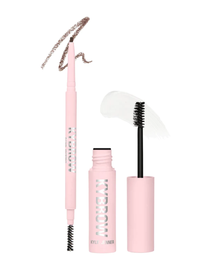 "Okay, I'm gonna try to recreate my 2017 glam, starting with brows. We always started with brows," she said, boldly defining her arches with the Benefit Cosmetics Precisely, My Brow Eyebrow Pencil ($48 from Sephora). "Then I found my old Kybrow kit ($46 (usually $62) from Kylie Cosmetics) from the archive, which was exciting. And I'm basically just making my brows as bold and as dark as possible."
