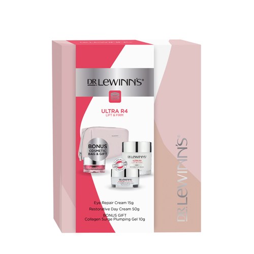Dr. LeWinn's Ultra R4 Gift Set is a limited-edition gift set for Christmas ideal for those wanting to help their skin become more firm and bouncy. With products containing potent ingredients such as Palmitoyl Tripeptide-3 and Neodermyl® (known as the ‘needle-free’ collagen filler), this collection will help lift and firm skin whilst combating the signs of age-related collagen depletion. It contains: Ultra R4 Restorative Day Cream 50ml, Ultra R4 Eye Repair Cream 15g, BONUS MINI Collagen Surge Plumping Gel 10g and BONUS Cosmetic Bag. Valued at $179.95.
