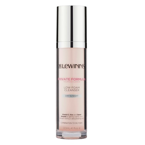 Dr. LeWinn’s Private Formula Low Foam Cleanser is a mild, soap-free cleanser with less foam to avoid over-drying and dehydrating the skin. Formulated with regenerative sweet almond protein, clearing papaya, vitamin E and aloe to lift away makeup while removing excess oil - skin is left balanced, clarified and refreshed. Best suited to combination and oily skin types.