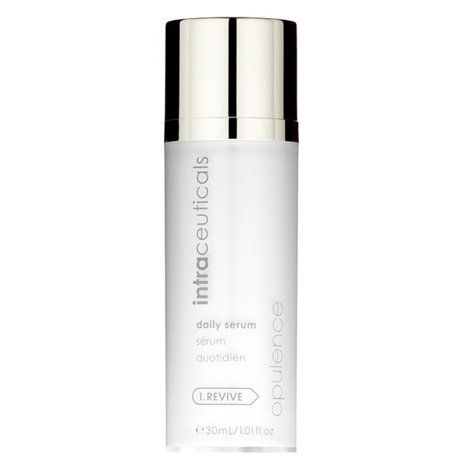 Intraceuticals Opulence Daily Serum is a skin-brightening serum for skin prone to hyperpigmentation, uneven tone, dullness, dehydration, fine lines and wrinkles. It contains sodium ascorbyl phosphate, nonapeptide-1 and ascorbyl tetraisopalmitate to brighten, aingiber officinale root extract to firm, and low-weight hyaluronics to provide instant hydration.