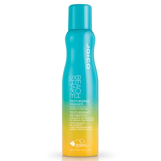 Joico Beach Shake™ Texturizing Finisher is a tactile, fast-drying styling spray for creating beachy waves in medium to thick hair. The formula contains coconut oil and sunflower oil along with beeswax and flexible resins to hydrate hair and achieve a lived-in beach wave look without using drying salt or sticky sugars.
