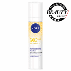NIVEA Q10 Plus Anti-Wrinkle Replenishing Pearls is really easy to use with the pump application and leaves my skin feeling smooth, plump and hydrated.   Great to use before make-up in the morning and after cleansing at night.  I have definitely noticed the difference in my skin, reducing any sign of fine lines and wrinkles-  Will 100% buy again.