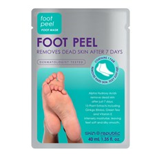 The Skin Republic Foot Peel treatment is a pair of booties (fits all sizes) that you wear (inside please) for at least 90 minutes (up to 2 hours,so make sure you are done for the evening when applying) to kickstart an exfoliation process that lasts about a week (starts within a day or so after using),and ends with feet that are truly reminiscent of a baby's bot bot.The ingredients list contains some beautiful botanical extracts..It contains 15 of them,including ginko biloba,green tea and lavender extract (hmmm comforting),plus vitamin E to soothe and maintain healthy feet,as well as AHAs,which do the hard work to remove and peel dead skin cells to reveal soft,sandal ready skin.