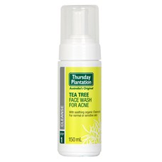Thursday Plantation Tea Tree Face Wash for Acne is a cleanser for acne-prone skin. It contains antibacterial pure tea tree oil to remove makeup and other impurities while chamomile soothes redness. The formula is pH-balanced and free from soap, benzoyl peroxide, petrochemicals, mineral oils, synthetic parabens, propylene glyol, lauryl sulphates and animal-derived ingredients.