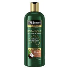 TRESemmé Pro Collection Shampoo Botanique Restore & Shine is a shampoo with a botanical blend of coconut water, coconut oil and aloe vera that leaves hair feeling soft, smooth and looking beautiful. This system gently cleanses and restores smoothness and strength, leaving it with brilliant natural-looking shine. No Parabens. No Dyes. Silicone Free. Safe for colour treated hair.