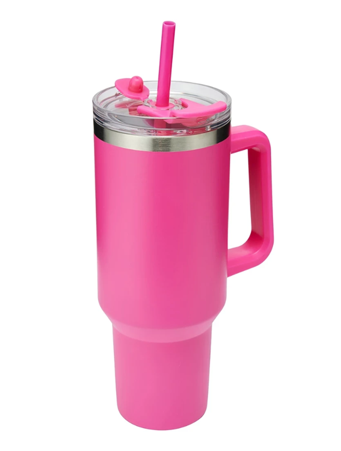 Durable powdercoat finish / reusable Tritan straw / ergonomic soft-grip handle