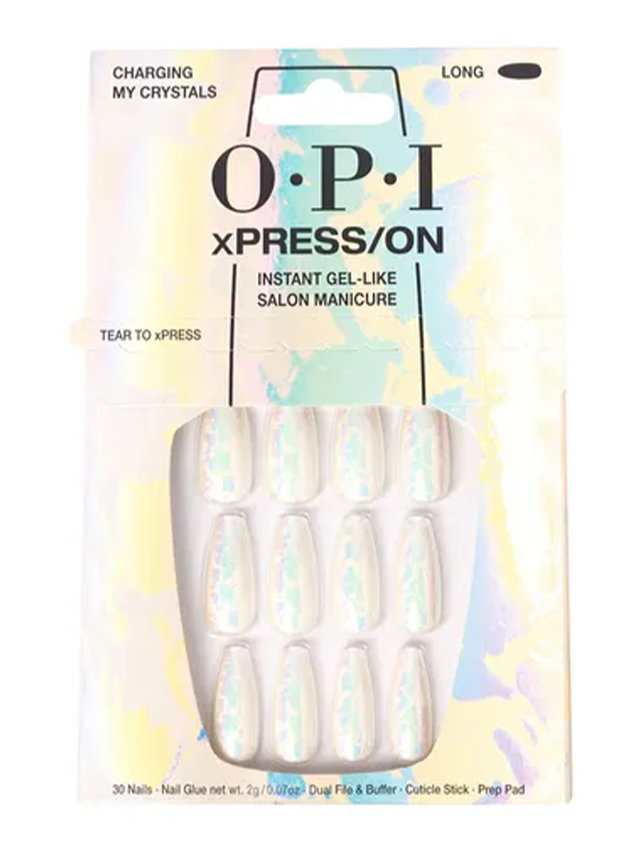 Pack includes: nail glue, cuticle stick, dual nail file and buffer, OPI prep pad and 30 nails in different sizes