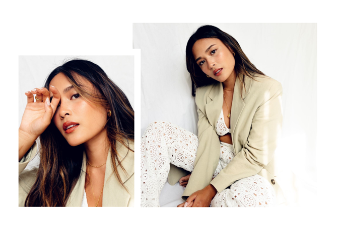 Hoang doesn’t mind a DIY skin-saver, either, with one of her go-to hacks being handed down from her mum in line with her Vietnamese heritage – Vietnamese women were some of the very first to mix up their own masks, after all. “Growing up my mother always taught me to take care of my skin. She had all these amazing and natural skin ‘treatments’ that we would do together at home on a casual Friday afternoon. One of the things we used to do together was mixing egg white with honey for a natural face mask. It was amazing for the skin and left it glowing. From time to time, I still continue to use natural ingredients to make my own face masks.”